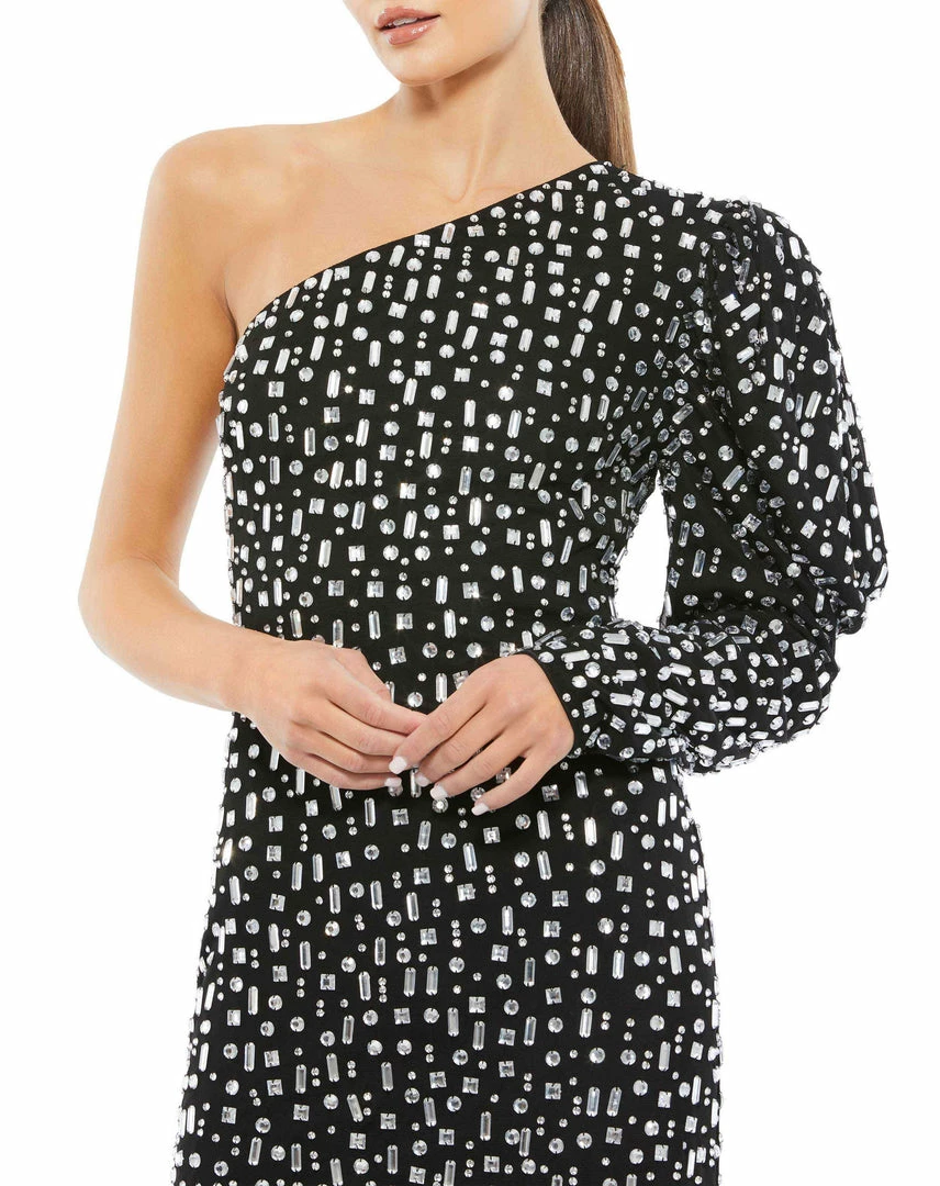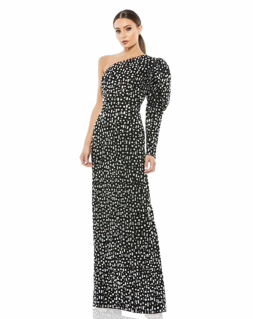 Ieena For Mac Duggal Bejeweled Puff Sleeve One Shoulder Gown Shop For