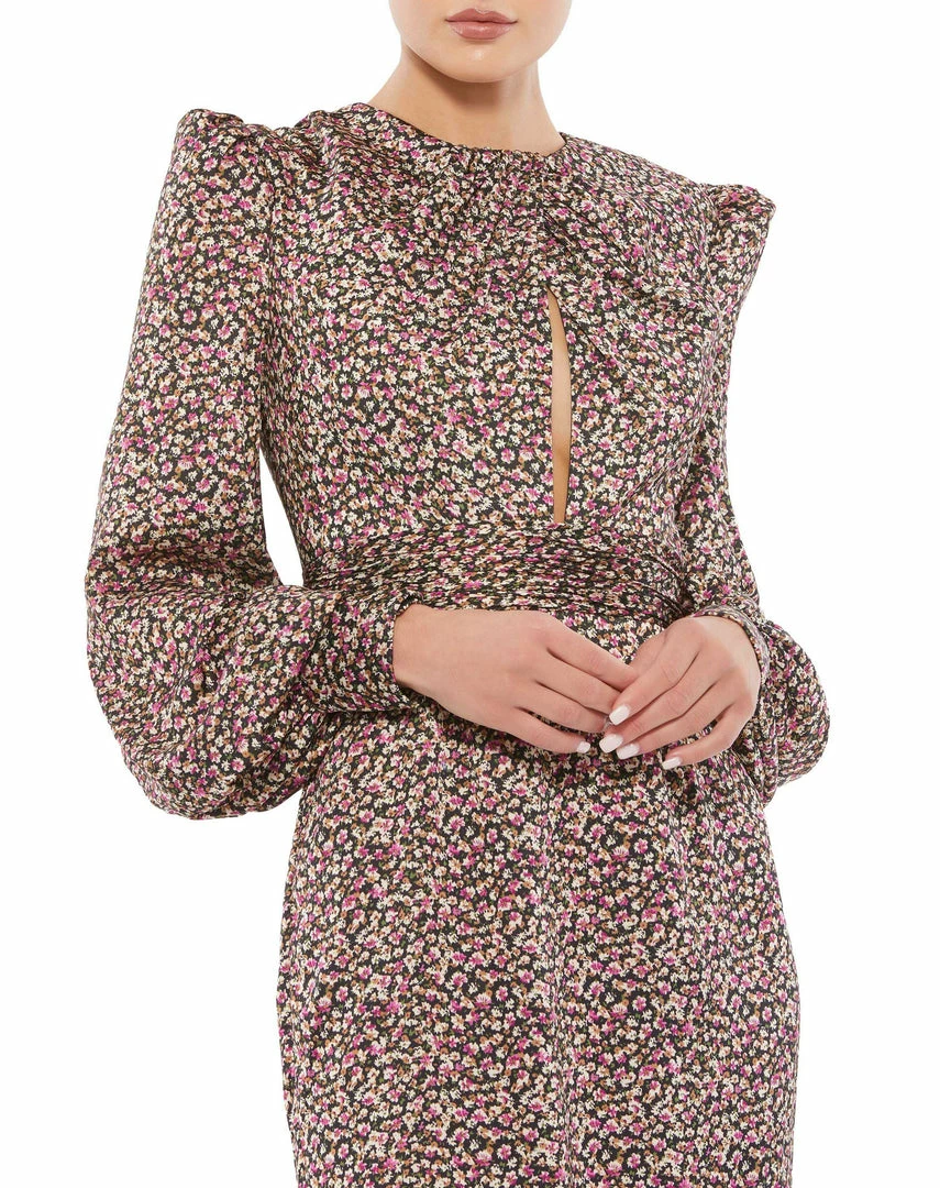 Ieena For Mac Duggal Floral Print Keyhole Long Sleeve Mini Dress