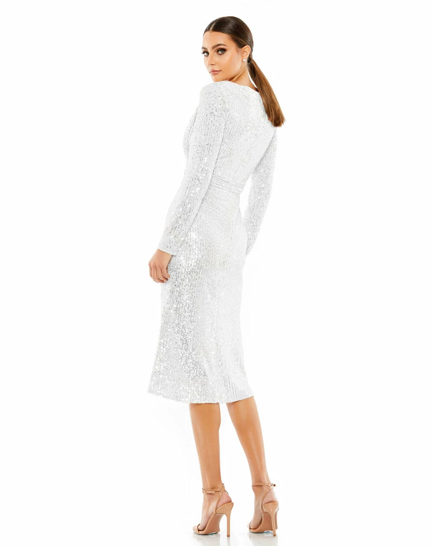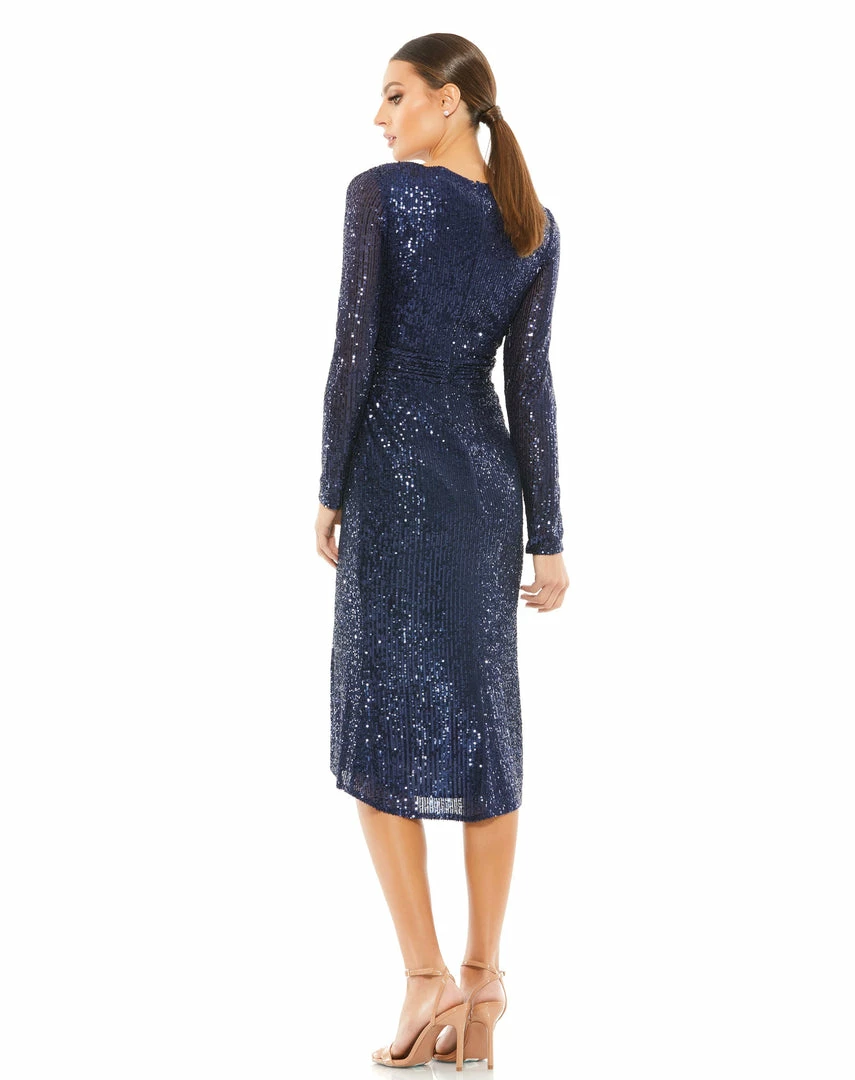 Ieena For Mac Duggal Long Sleeve Sequined Midi Dress