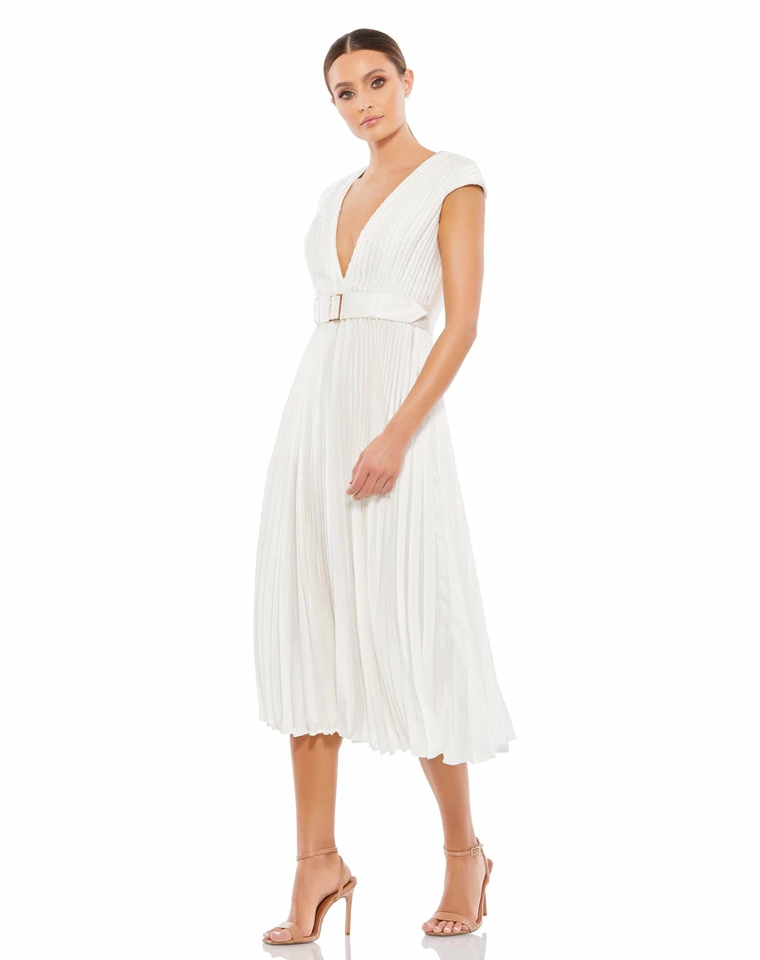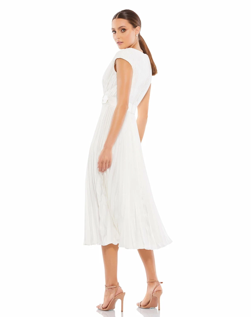 Ieena For Mac Duggal Pleated Cap Sleeve Belted A-Line Midi Dress