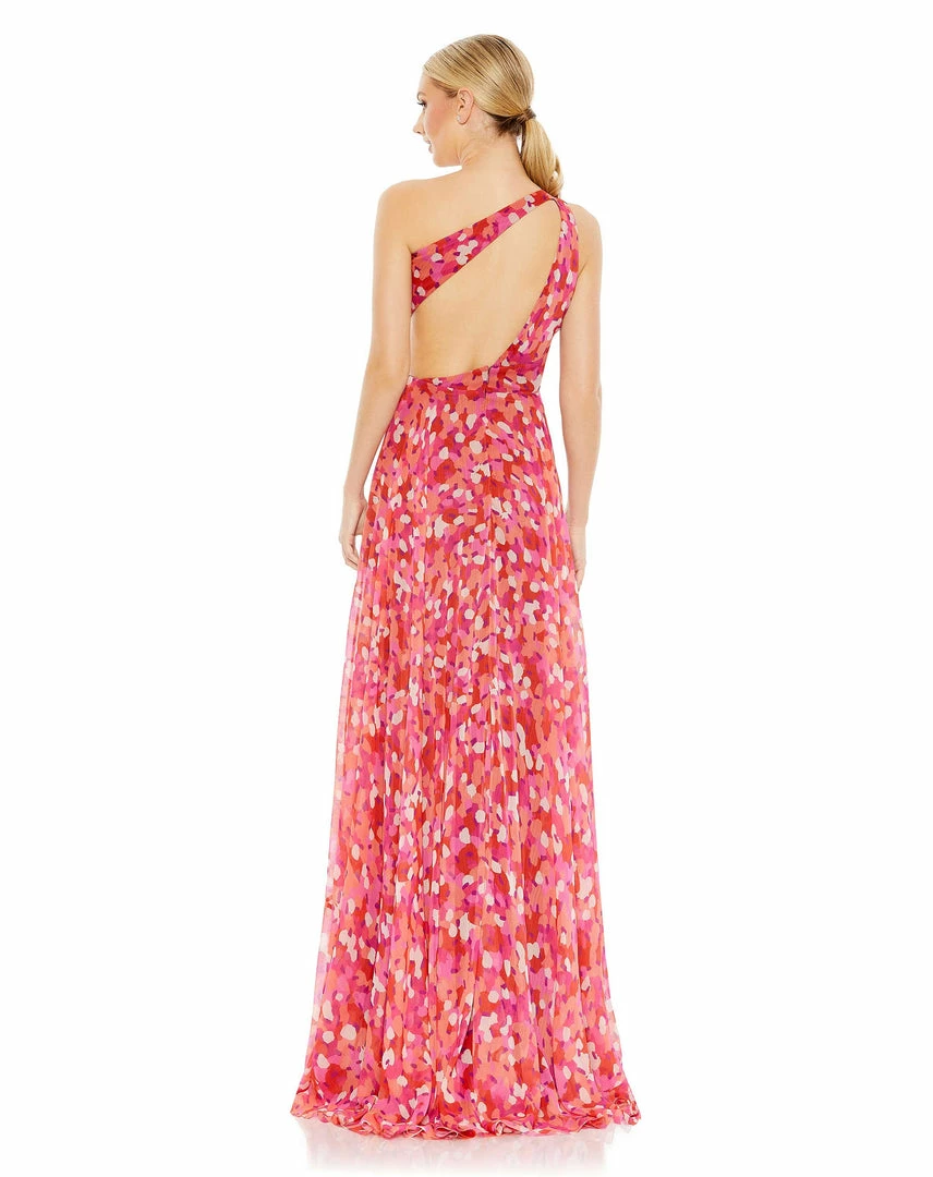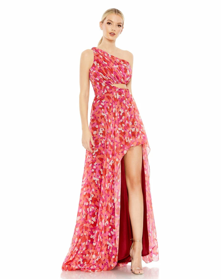 Ieena For Mac Duggal Printed One Shoulder Cut Out Hi-Lo Gown