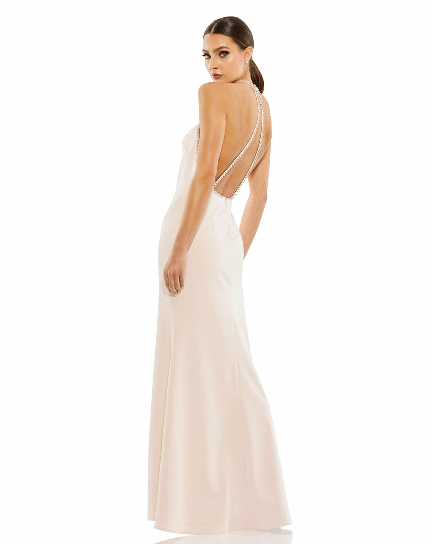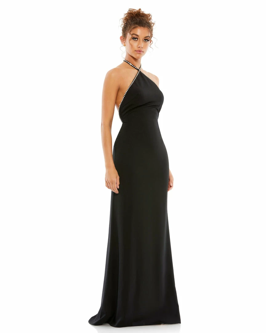Ieena For Mac Duggal Rhinestone Halter Column Gown