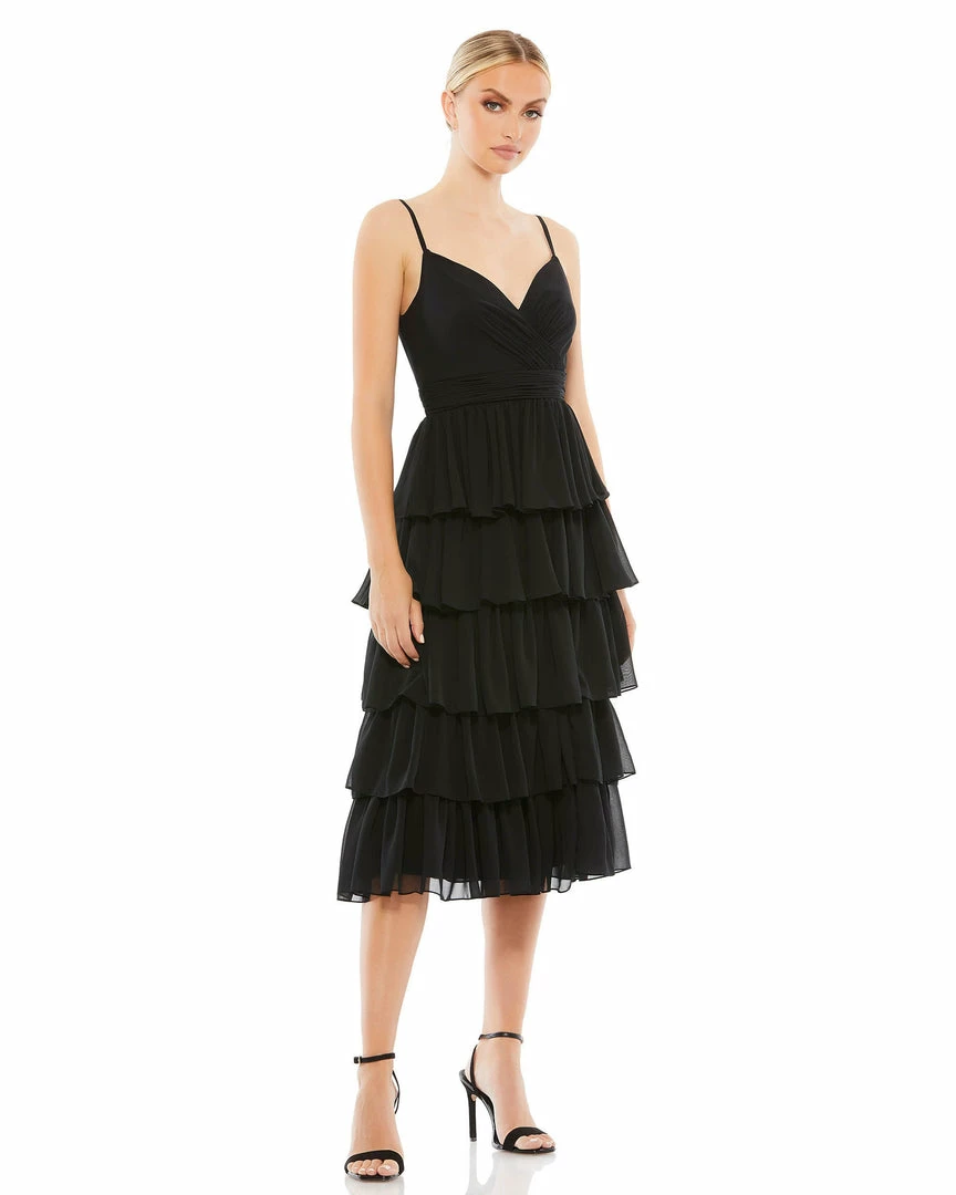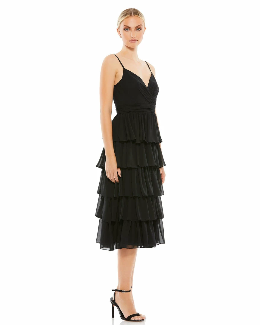Ieena For Mac Duggal Ruffle Layered V-Neck Midi Dress Shop For