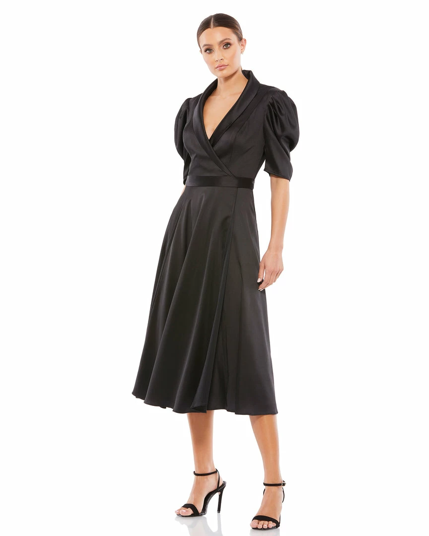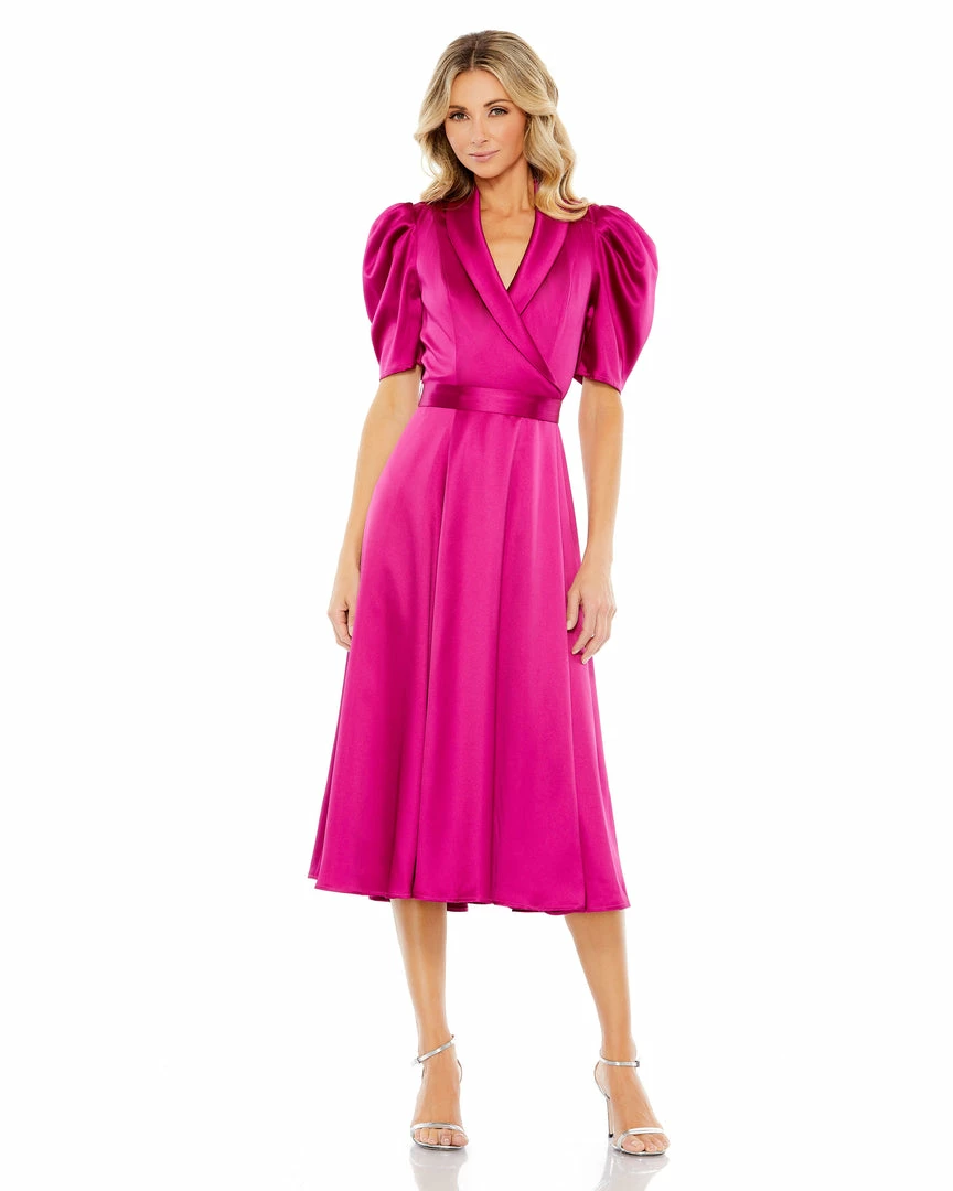 Ieena For Mac Duggal Satin Lapel Puff Sleeve Tea Length Dress Shop For