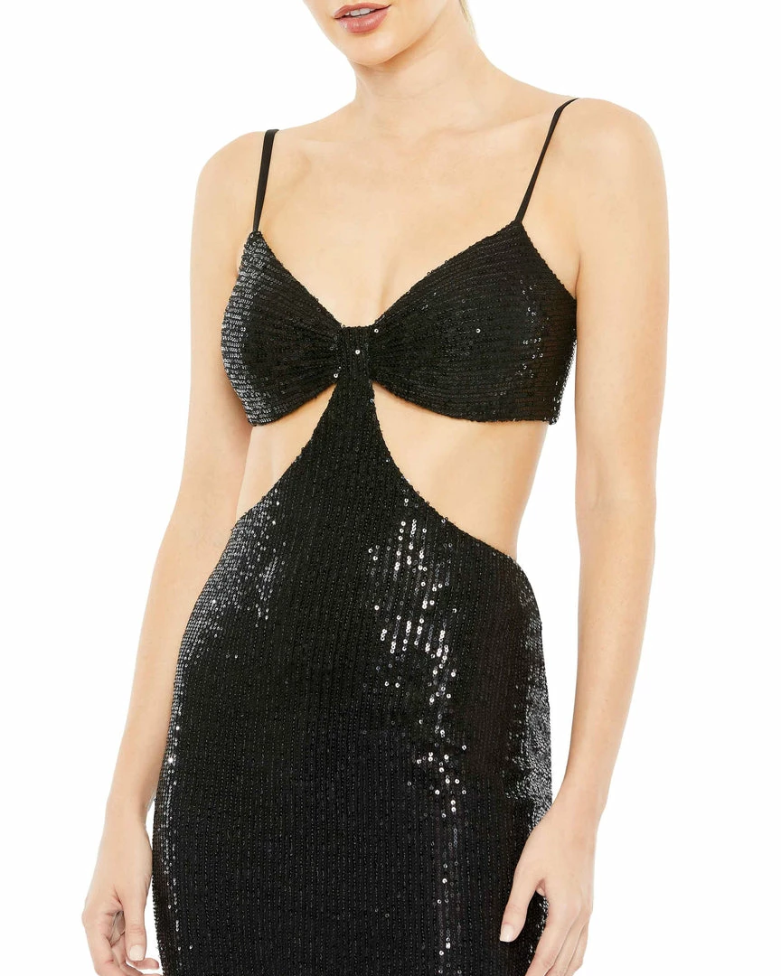 Ieena For Mac Duggal Sequined Spaghetti Strap Cut Out Dress