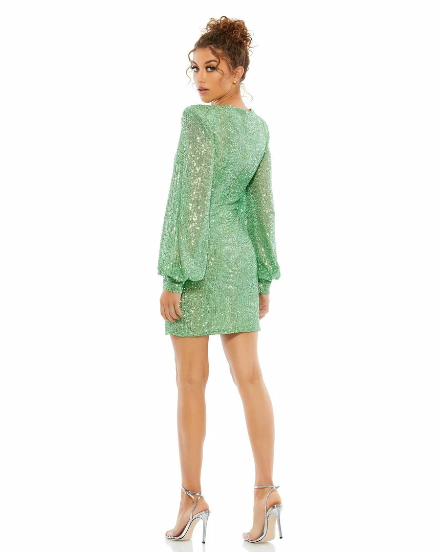 SKU: ieena-for-mac-duggal-6933780988083 Categories: Shop by Length, Short Dresses, The Wedding Shop, Wedding Guest Tags: Above The Knee, Cocktail, Green, Long Sleeve, Mini, Sequined, Sequins, Wedding Guest