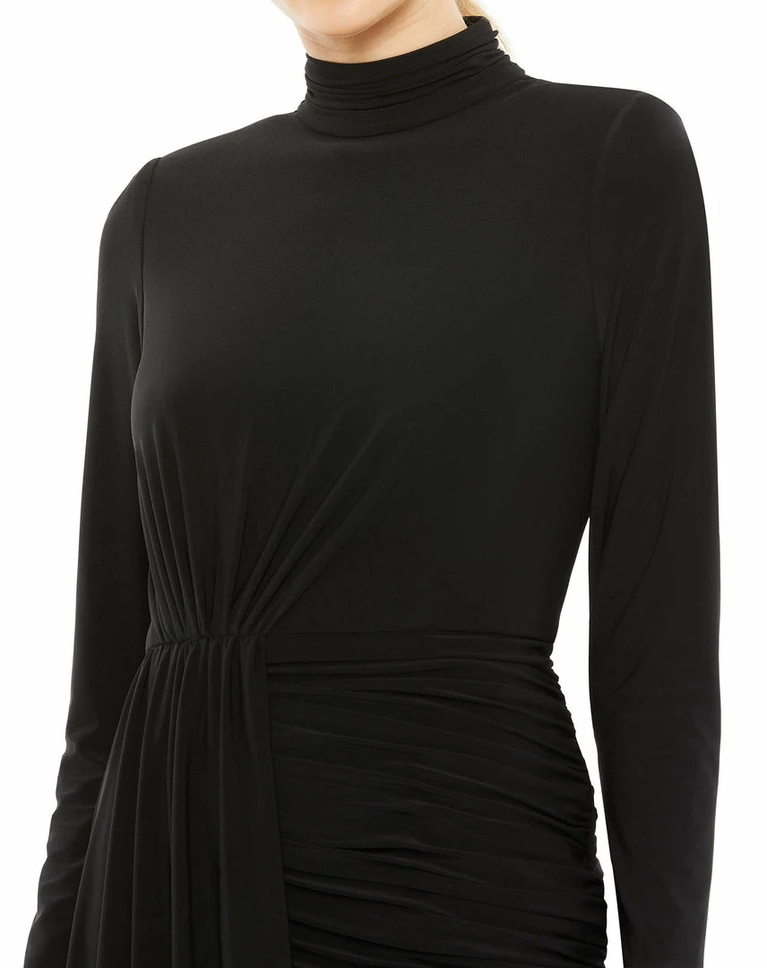 Ieena For Mac Duggal Shop For Jersey High Neck Asymmetrical Draped High Low Dress