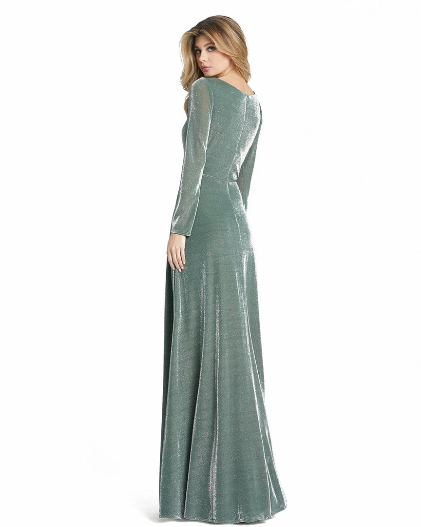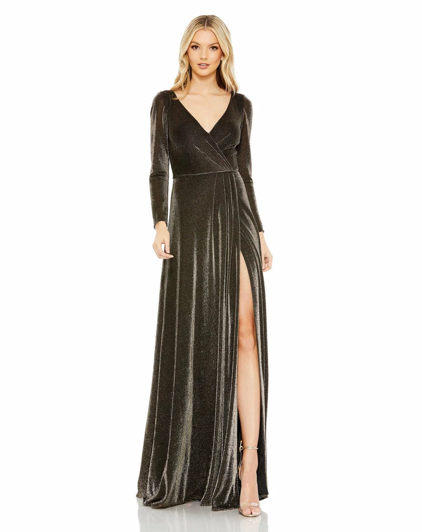 Ieena For Mac Duggal Shop For Metallic Jersey Surplice Gown