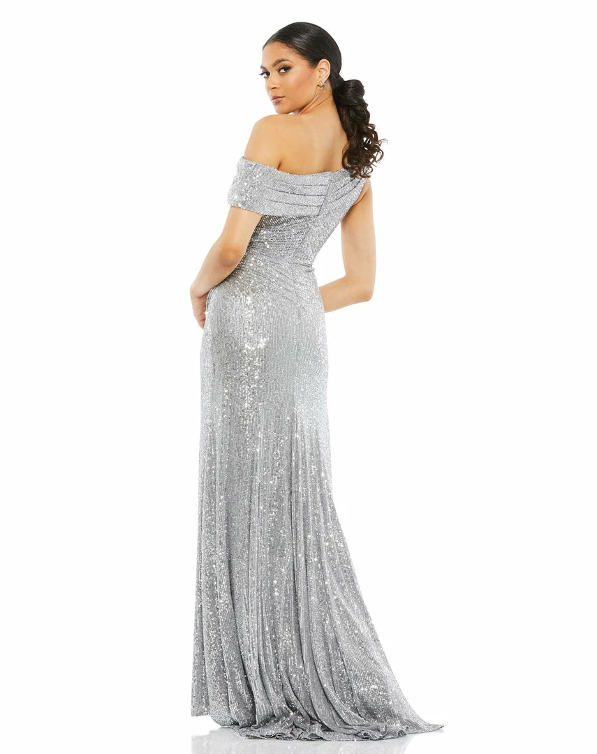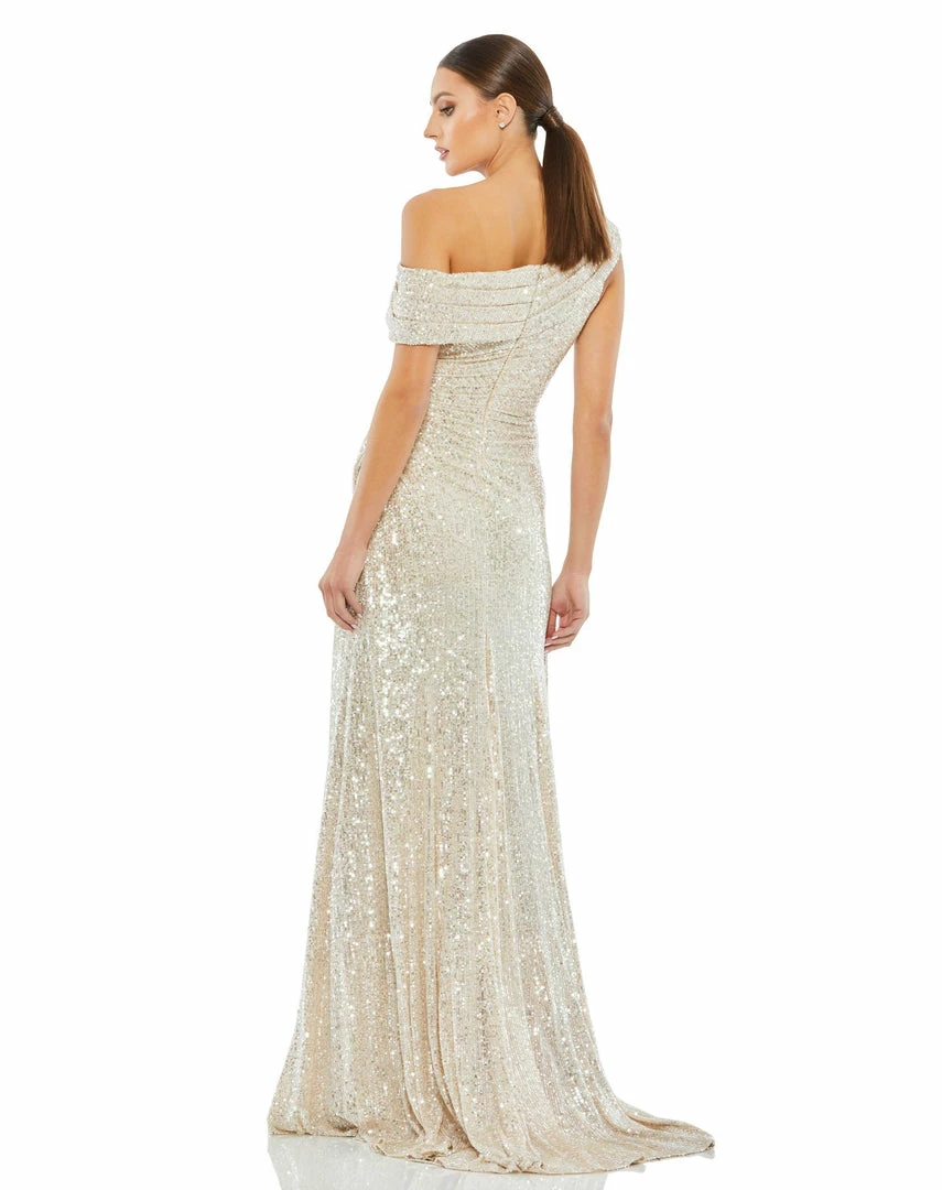 Ieena For Mac Duggal Shop For One-Shoulder Ruched Sequined Gown