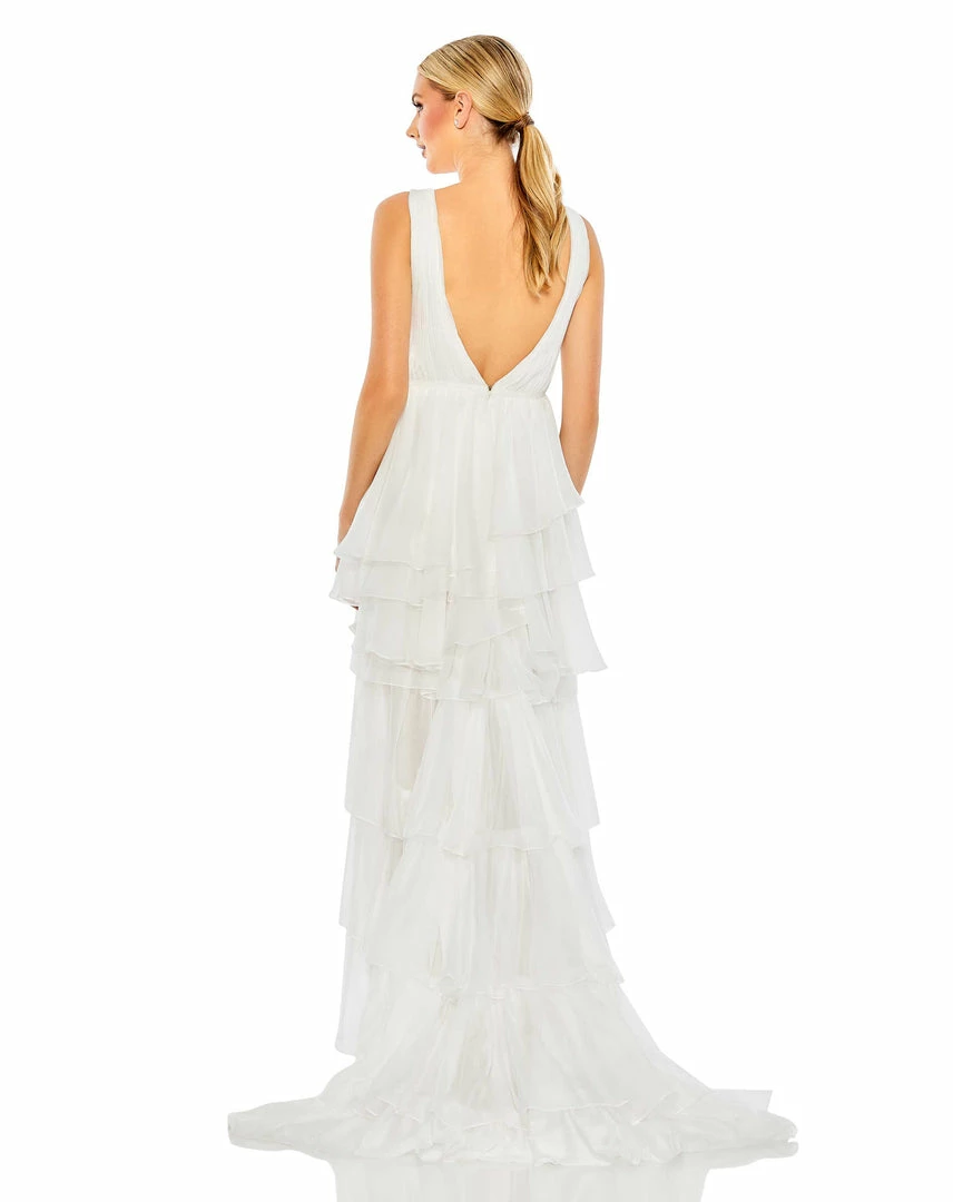 Gorgeous chiffon ruffled high low gown with built-in bodysuit.Â