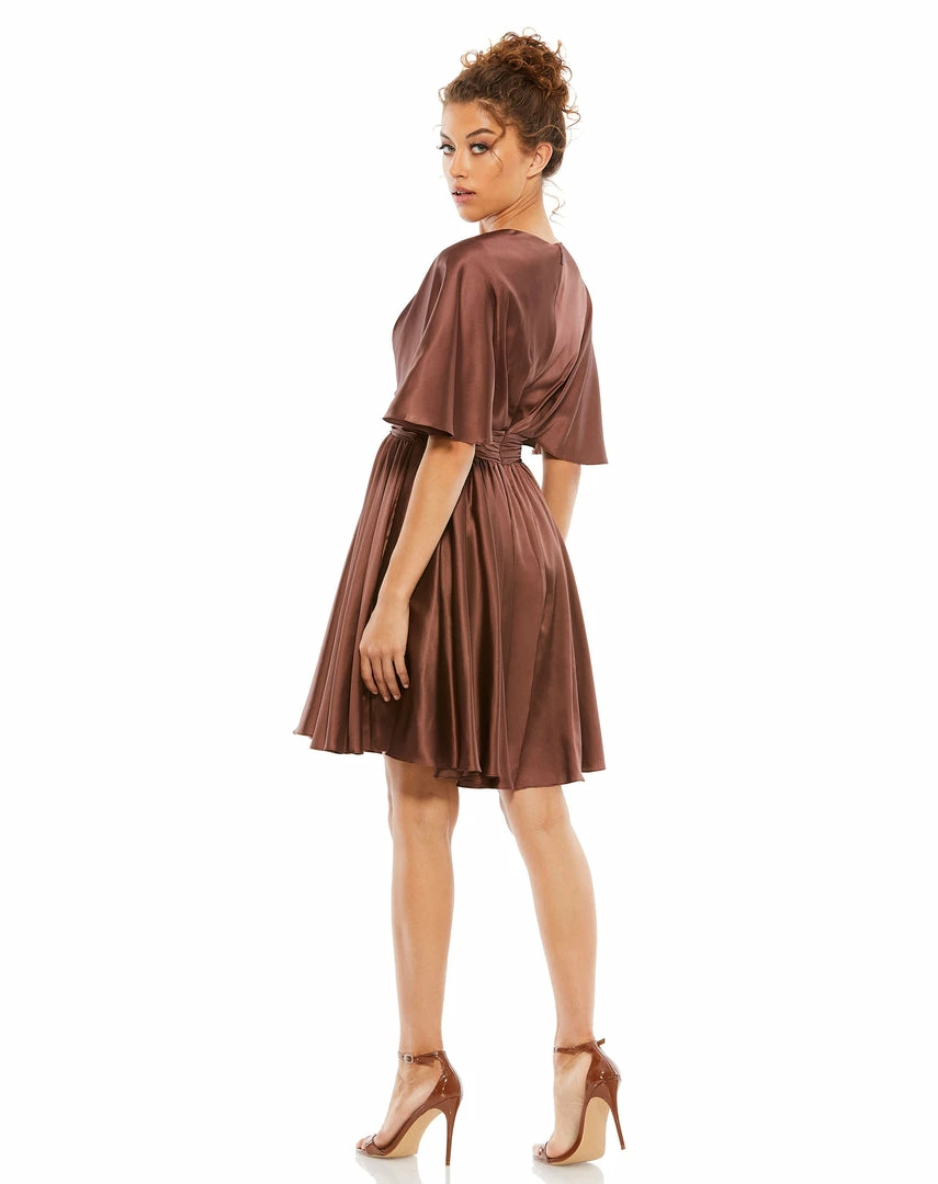 Ieena For Mac Duggal Shop For Satin Flowy Cape Sleeve Mini Dress