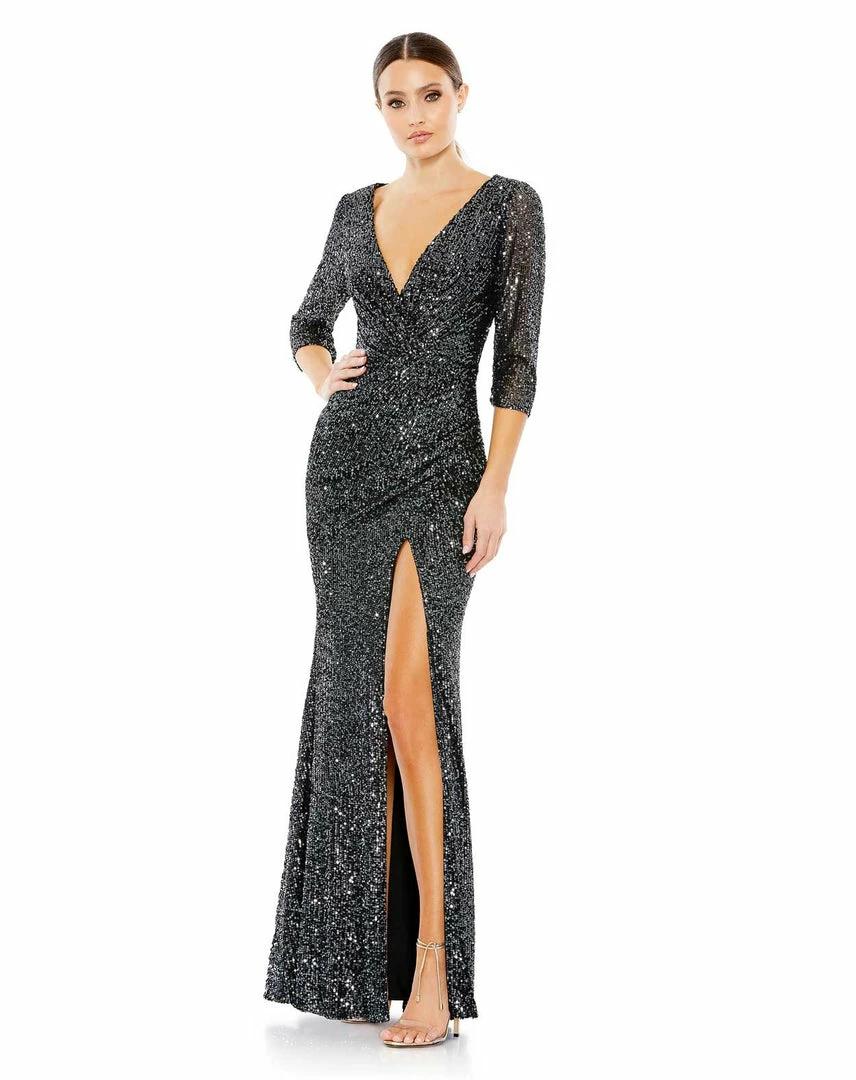 SKU: ieena-for-mac-duggal-7122647613619 Categories: Collections, Evening Gowns, Ieena for Mac Duggal, Long Dresses, New Arrivals, Shop by Length, Shop For Tags: 3/4 Sleeve, 3/4 Sleeves, Evening, July, Maxi & Floor Length, Metallic, Sequined, V-Neck