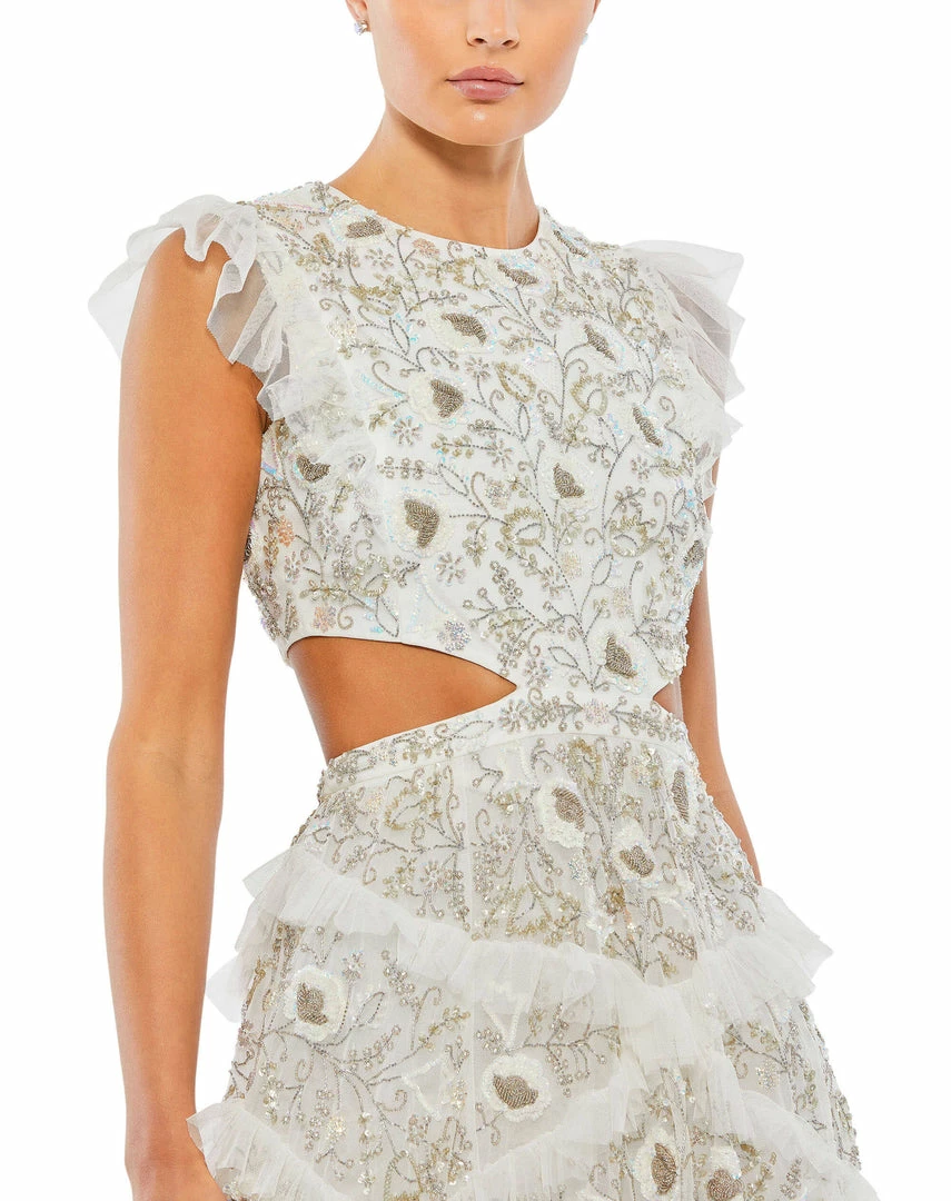 Mac Duggal Embellished Jewel Neck Tulle Ruffle Mini Dress