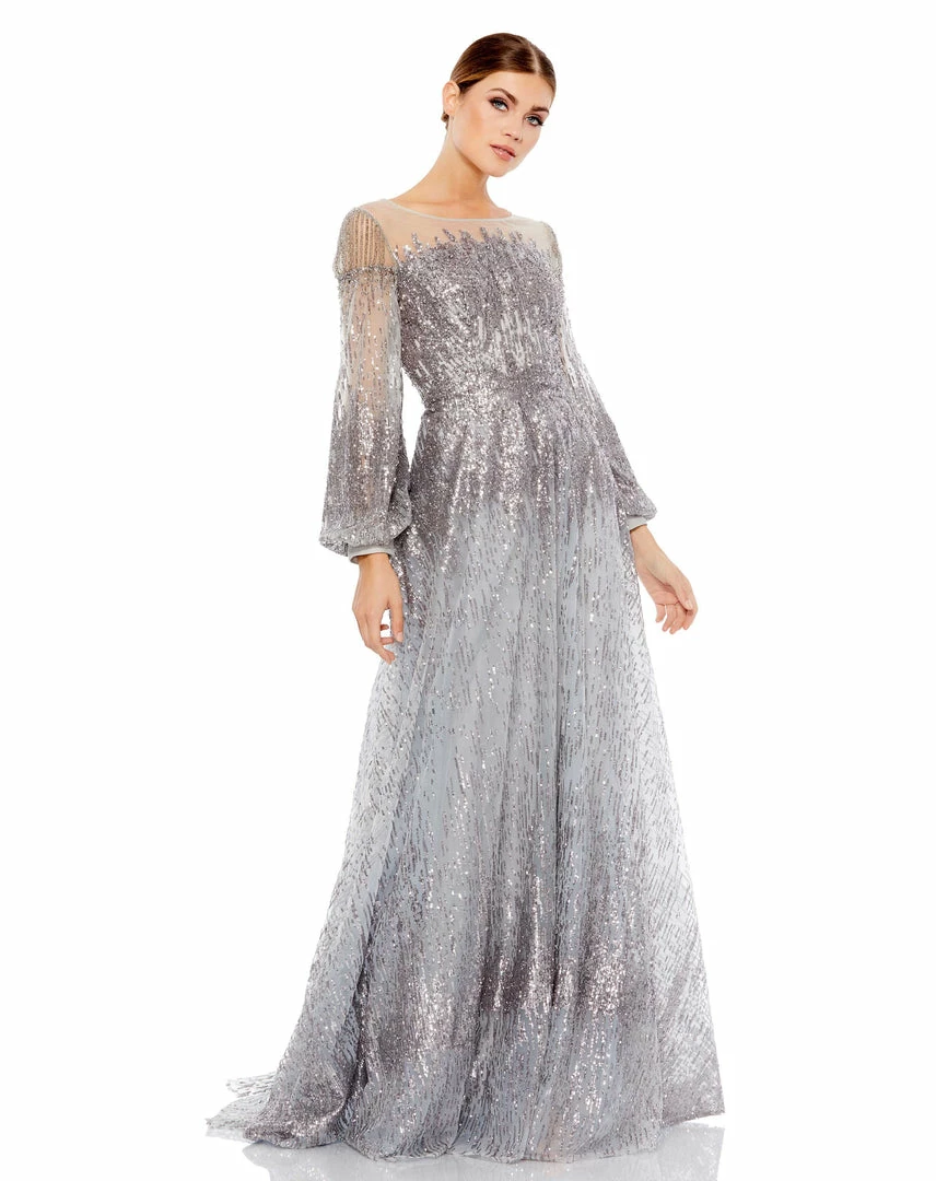 Mac Duggal Embellished Long Sleeve Illusion A Line Gown Shop For
