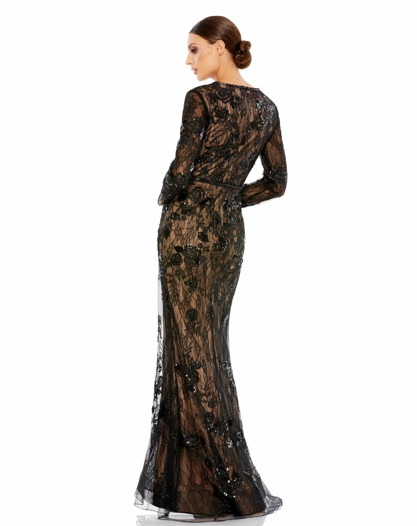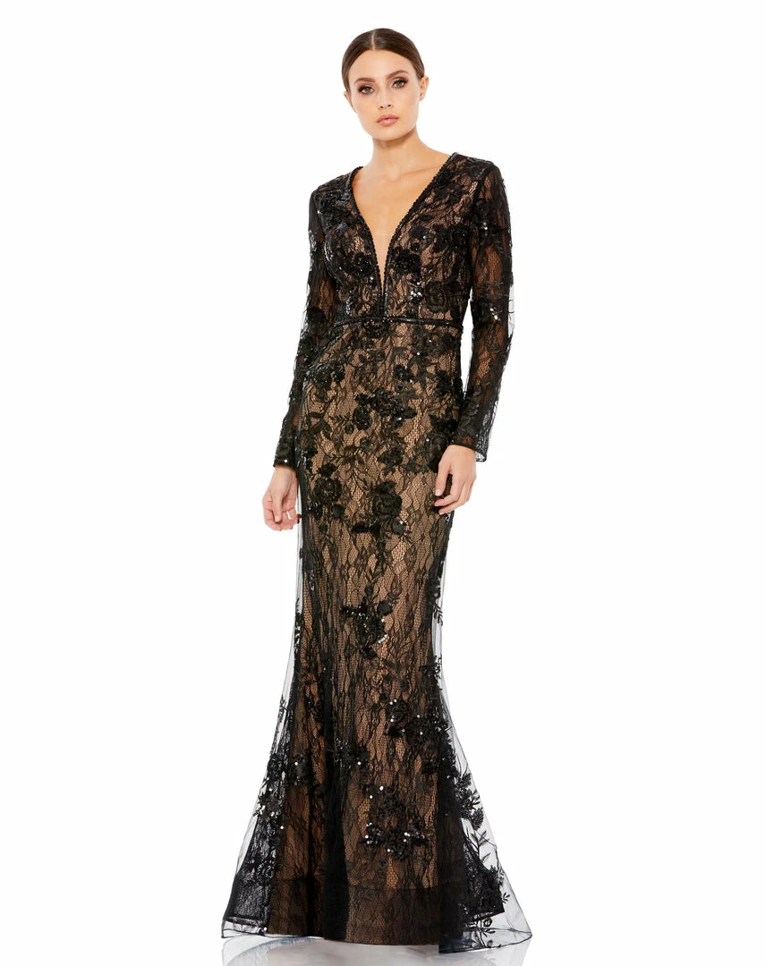Mac Duggal Embellished Long Sleeve Plunge Neck Trumpet Gown Shop For