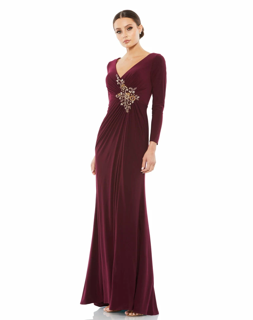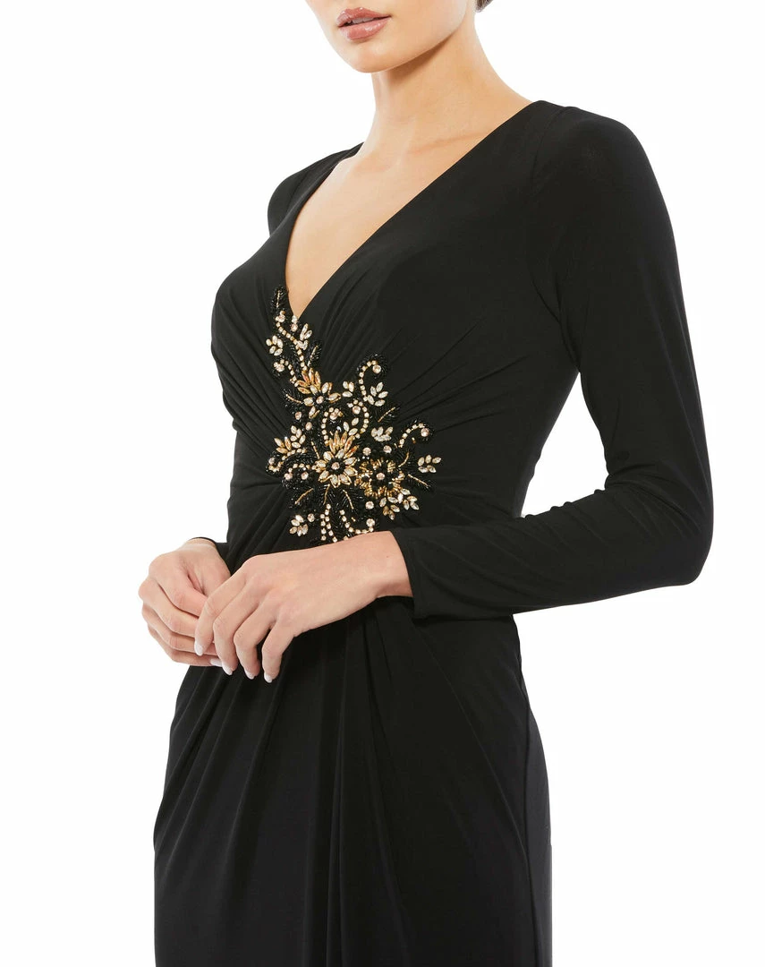 SKU: mac-duggal-6819444883635 Categories: Evening Gowns, Long Dresses, Mother of the Bride + Groom Dresses, Shop by Length, Shop For, The Wedding Shop Tags: Appliqué & Embroidery, Evening, July21, Long Sleeve, Maxi & Floor Length, MOTB, Rhinestone & Jewels, V-Neck