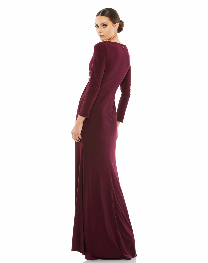 Mac Duggal Faux Wrap Long Sleeve Gown W/ Appliqué Detail Shop For