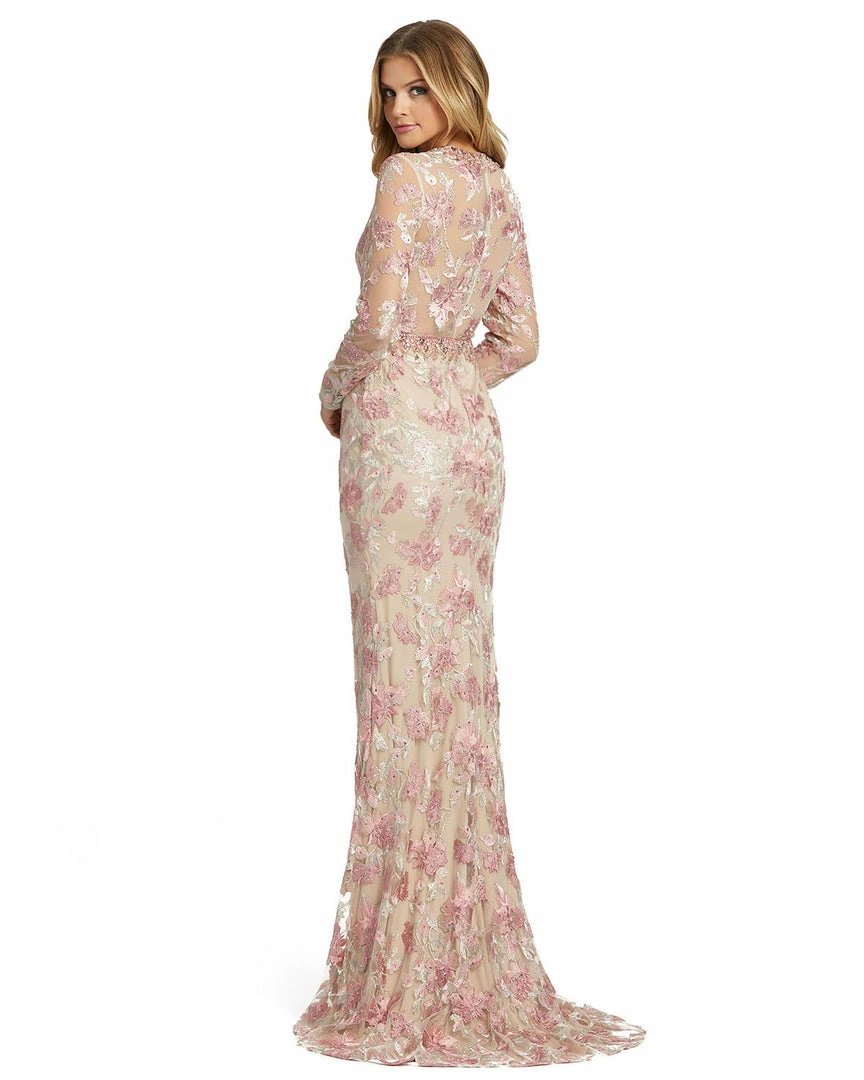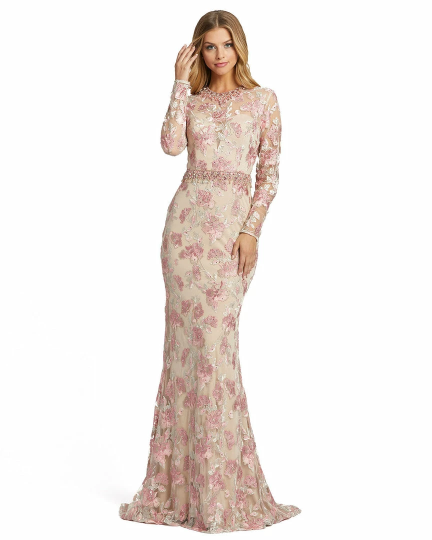 Floral applique trumpet gown with gorgeous waist and neck beading