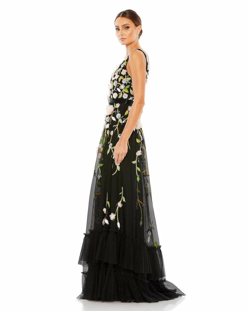 SKU: mac-duggal-7116252283059 Categories: Evening Gowns, Long Dresses, Shop by Length, Shop For Tags: Appliqué & Embroidery, Evening, Floral, Maxi & Floor Length, Open Back, Ruffles, Sleeveless, V-Neck