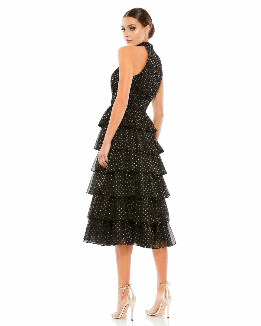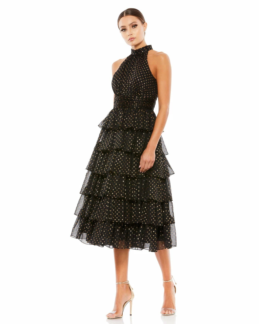 Mac Duggal Layered Polka Dot Halter Cocktail Dress