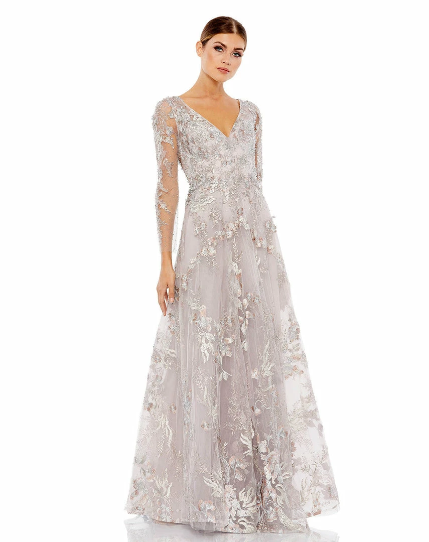 Mac Duggal Mother Of The Bride + Groom Dresses Floral Embroidered Illusion Sleeve Gown