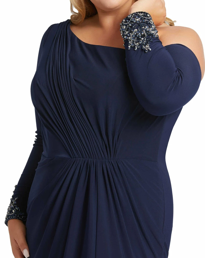 Be the first to review “Mac Duggal Ruched Drop Shoulder Jersey Gown (Plus)” Cancel reply