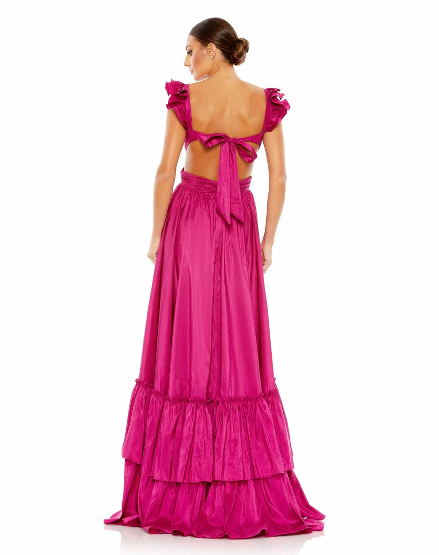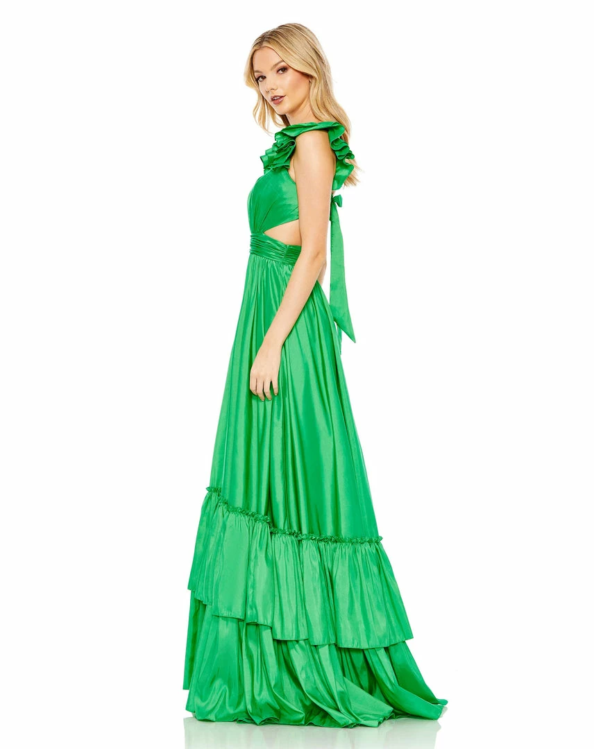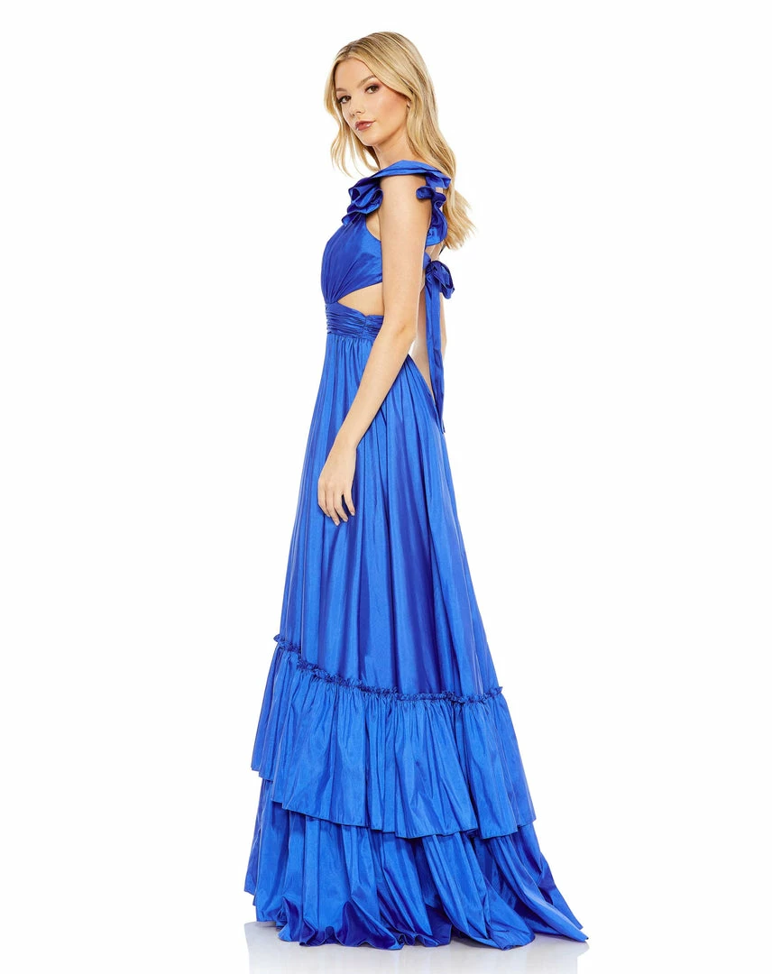 Mac Duggal Ruffle Shoulder Cut Out Gown