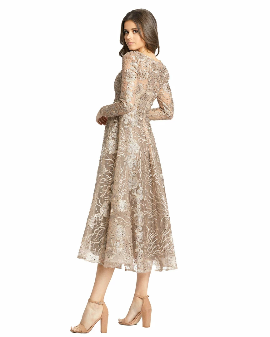 Mac Duggal Embellished Illusion Long Sleeve Midi Dress Shop For