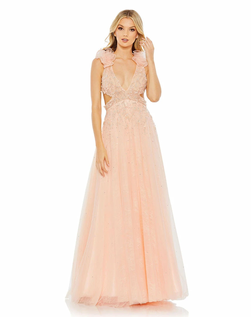 Mac Duggal Shop For Embellished Ruffle Shoulder Cut Out A Line Gown