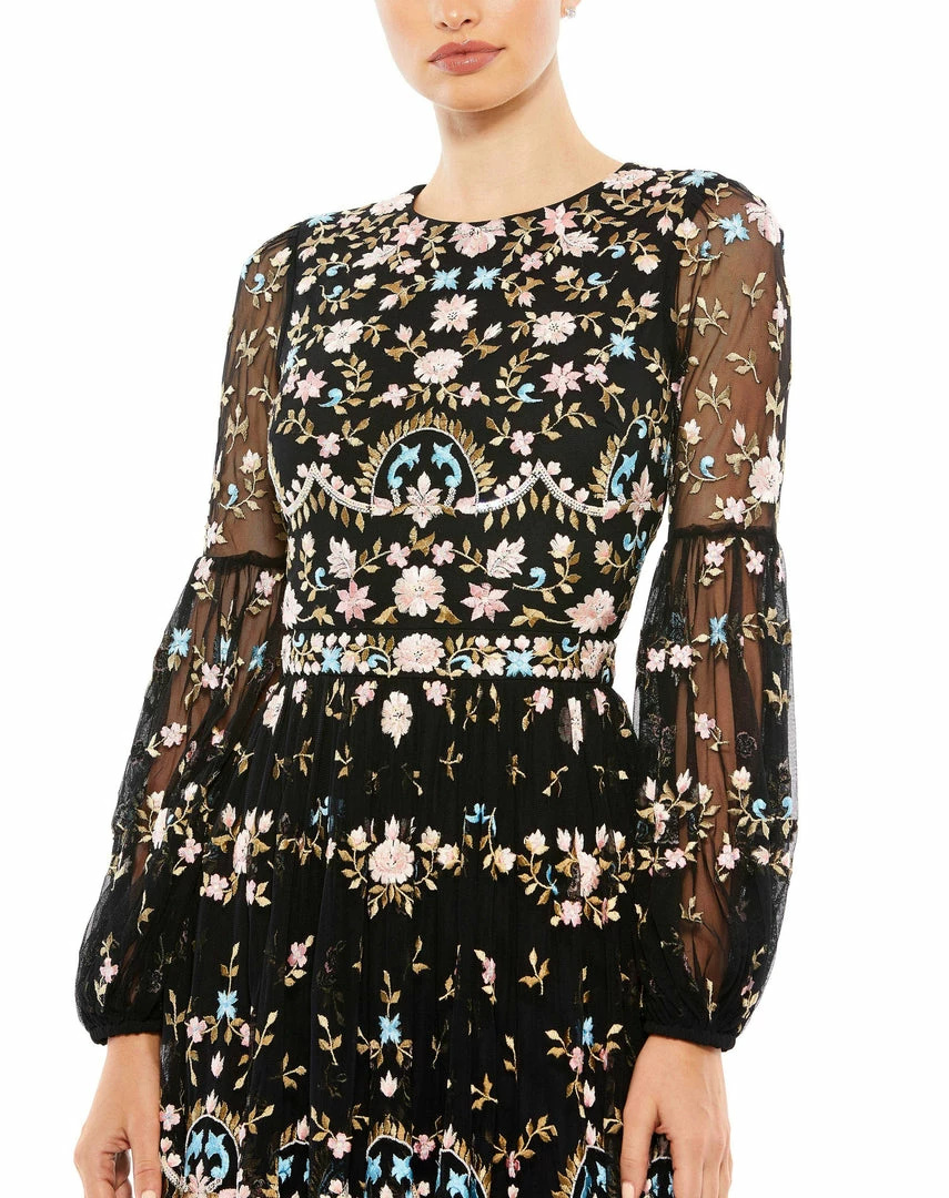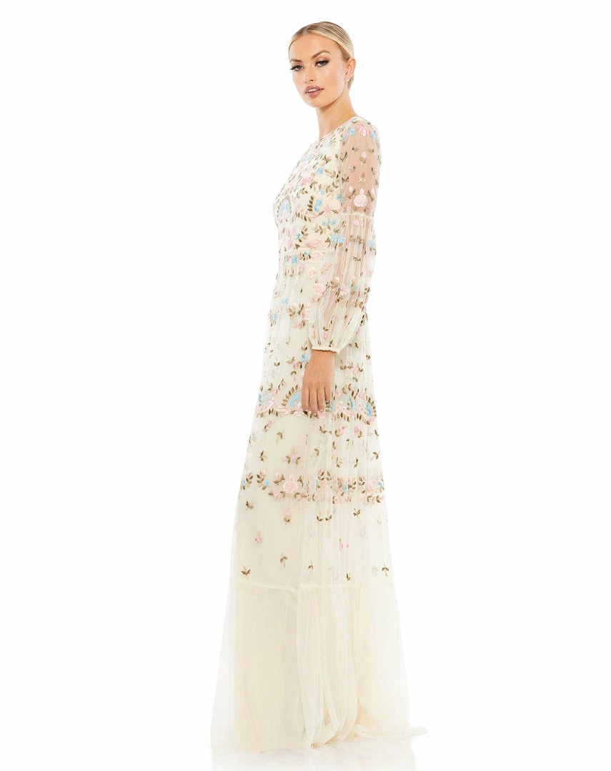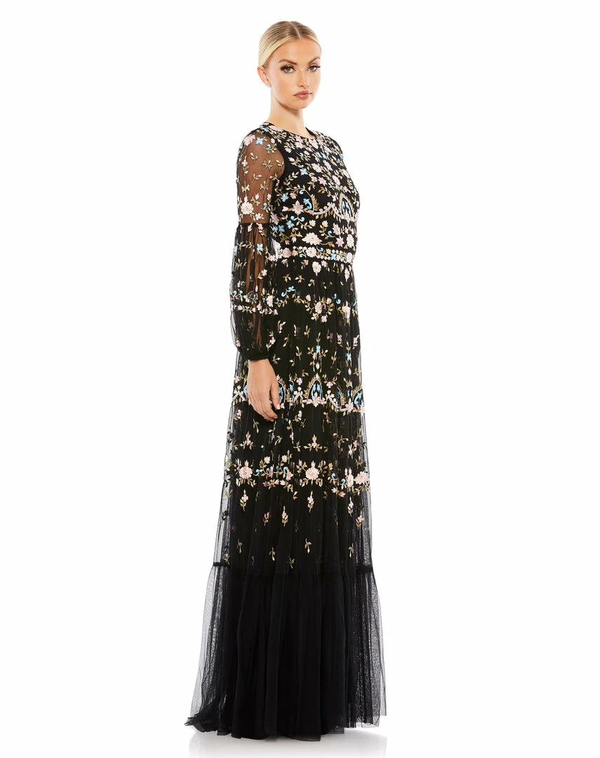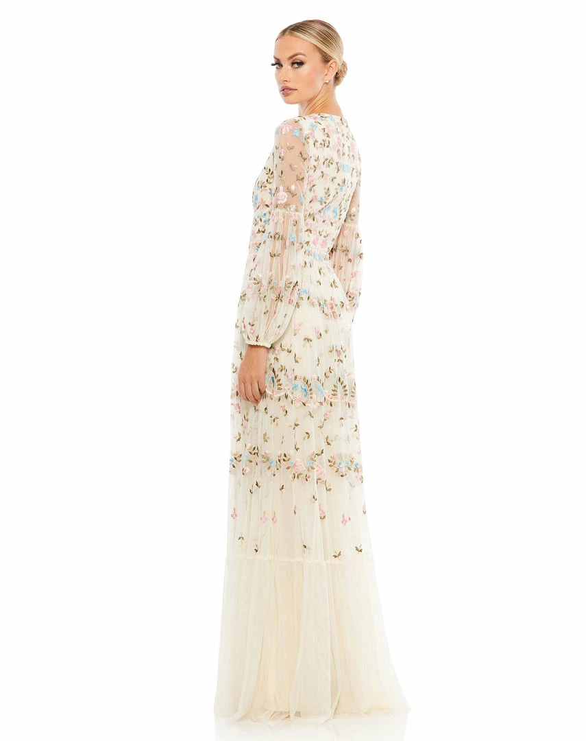 Mac Duggal Shop For Embroidered Blouson Sleeve Gown