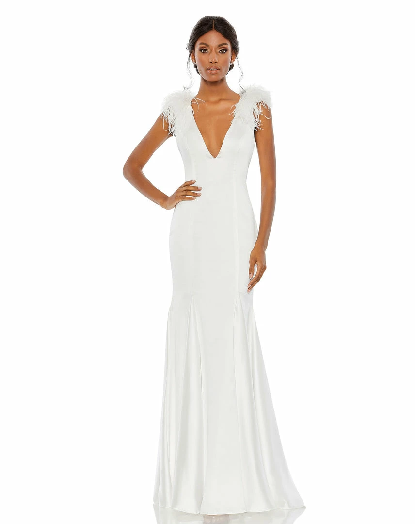 Mac Duggal Shop For Feather Shoulder V Neck Column Gown