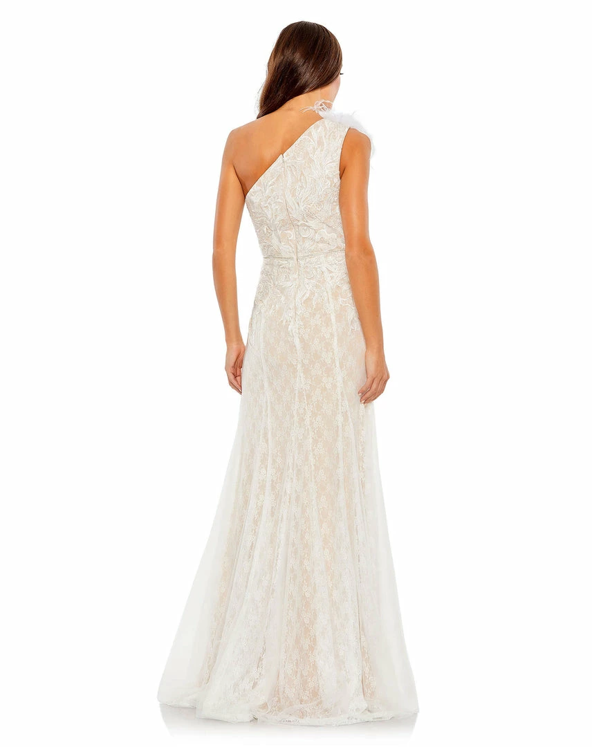 Mac Duggal Shop For Lace Embellished Feathered One Shoulder Gown
