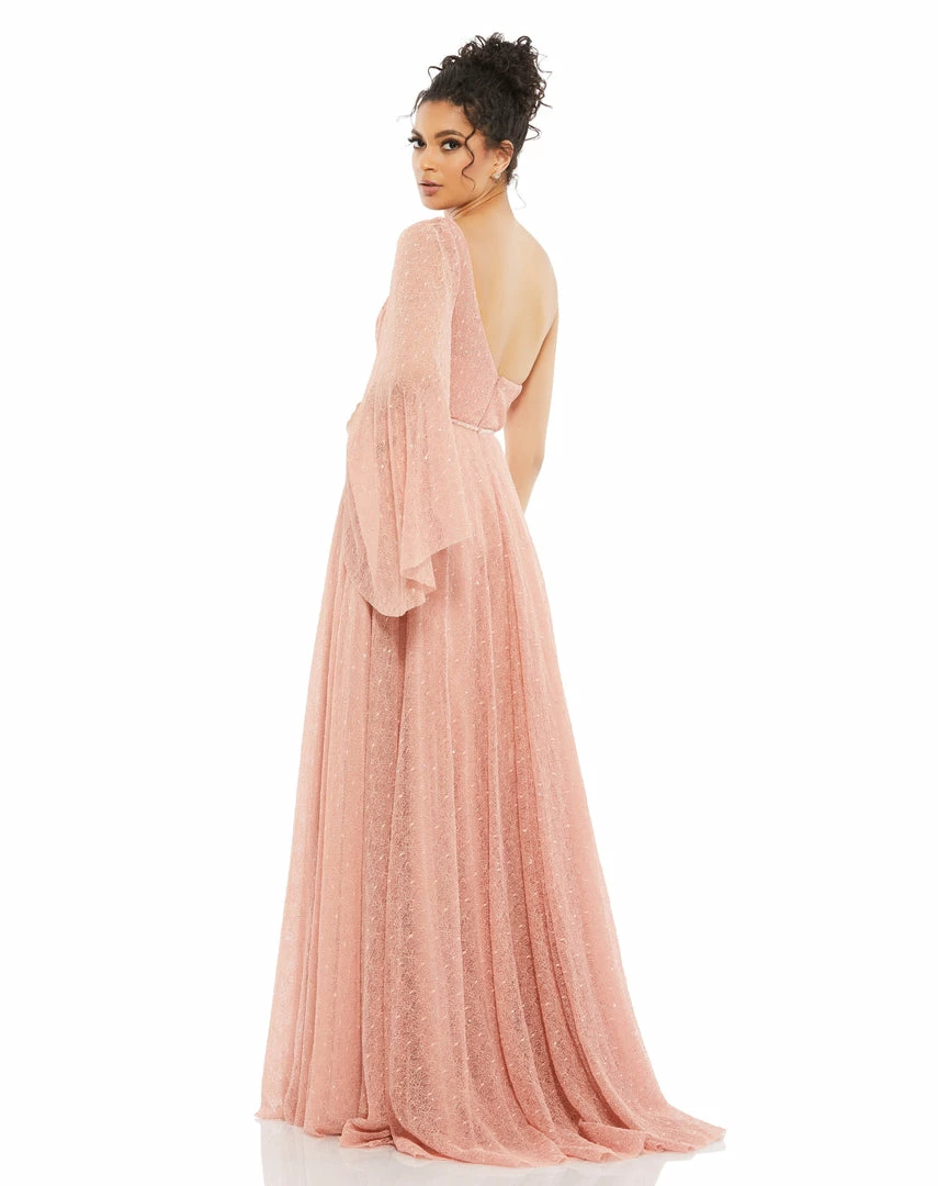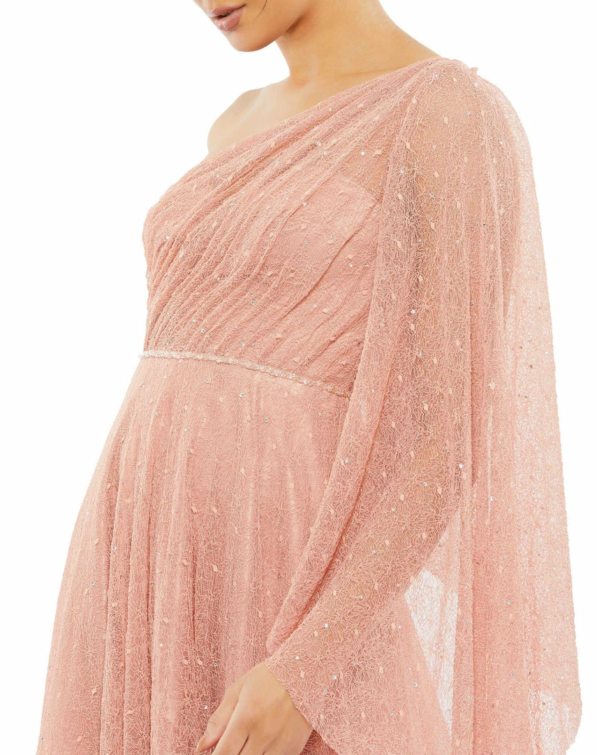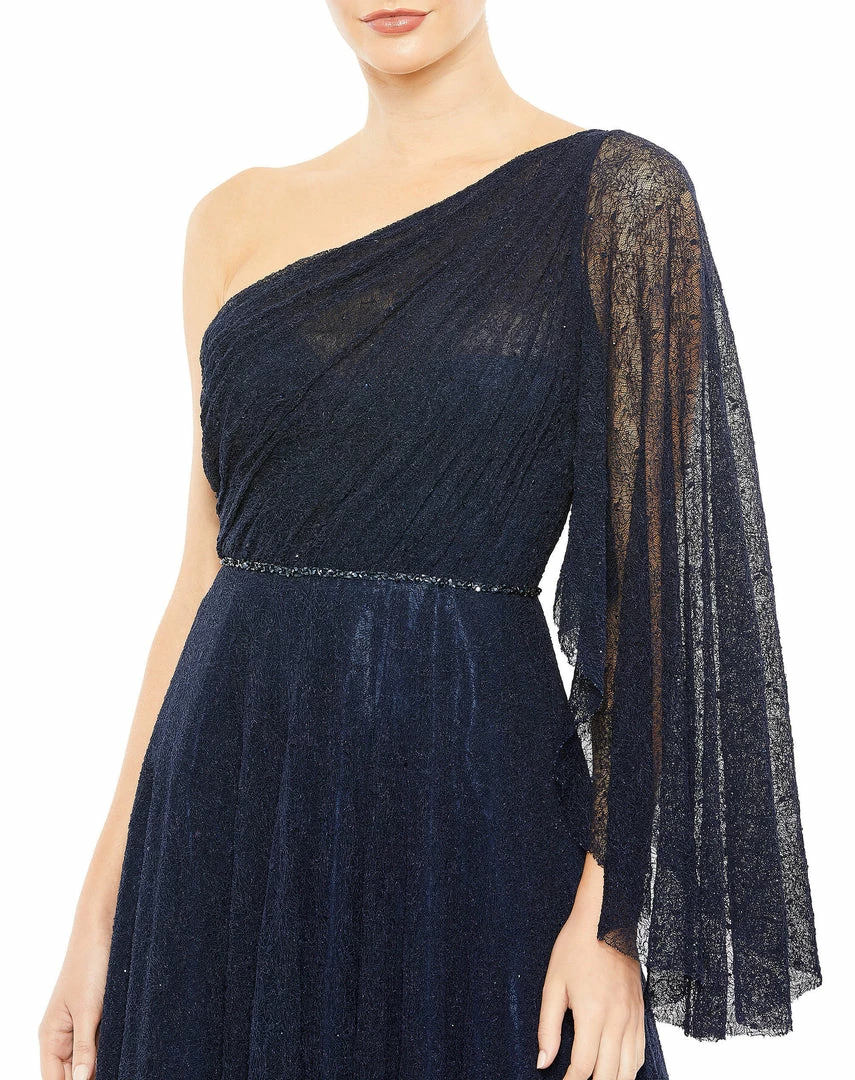 Mac Duggal Shop For One-Shoulder Bell Sleeve Lace Gown