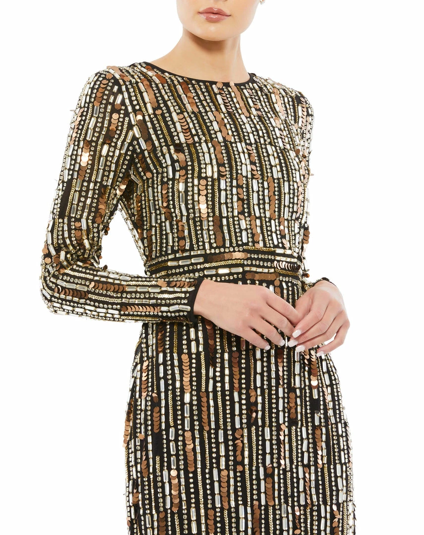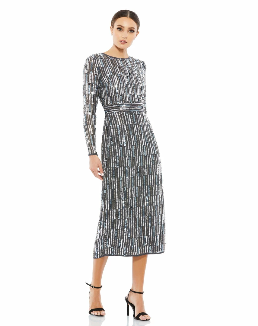 Mac Duggal Shop For Paillette Embellished Long Sleeve Midi Dress