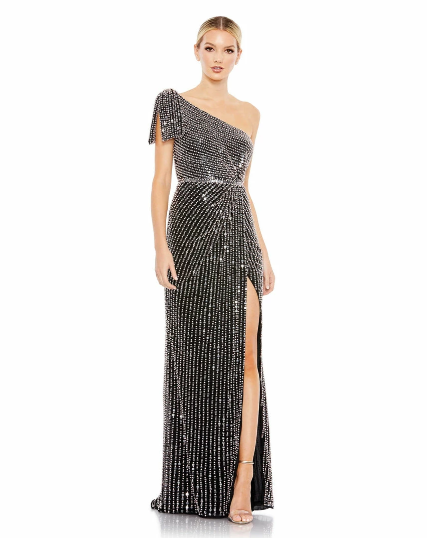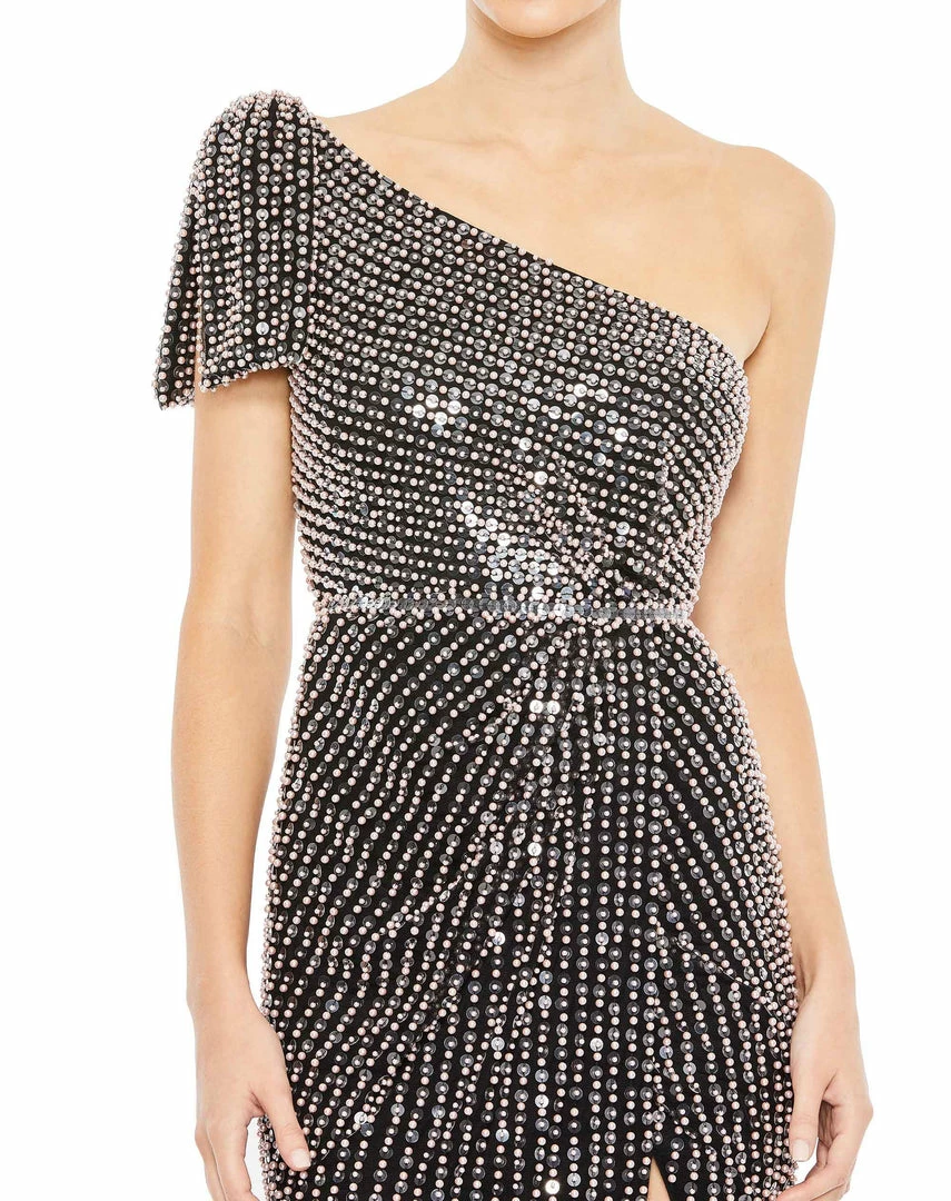 Mac Duggal Shop For Pearl Embellished Soft Tie One Shoulder Gown